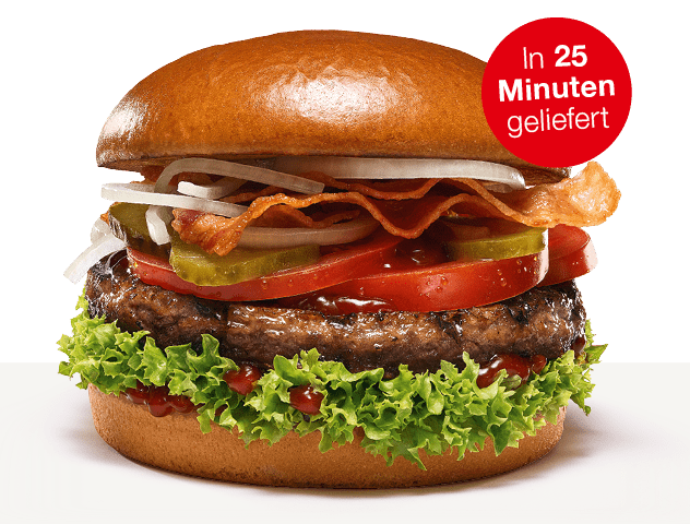 Lust auf ein perfekt gegrilltes Rindfleisch-Patty, knusprigen Bacon und würzige BBQ-Sauce?